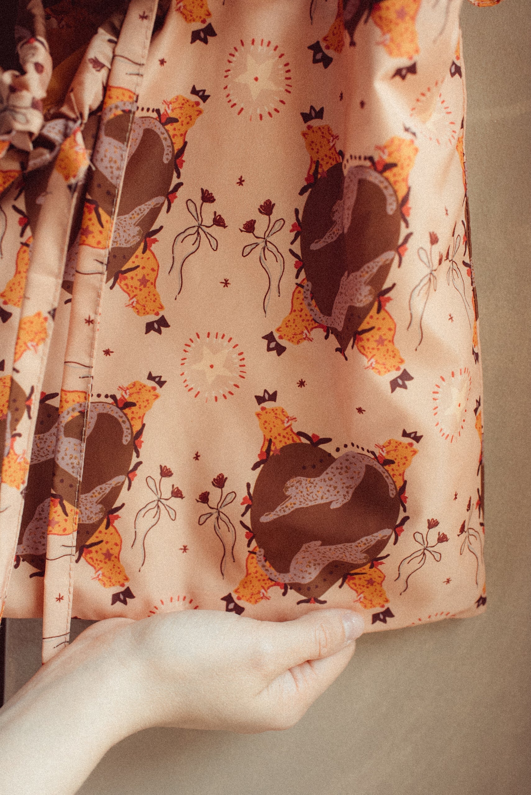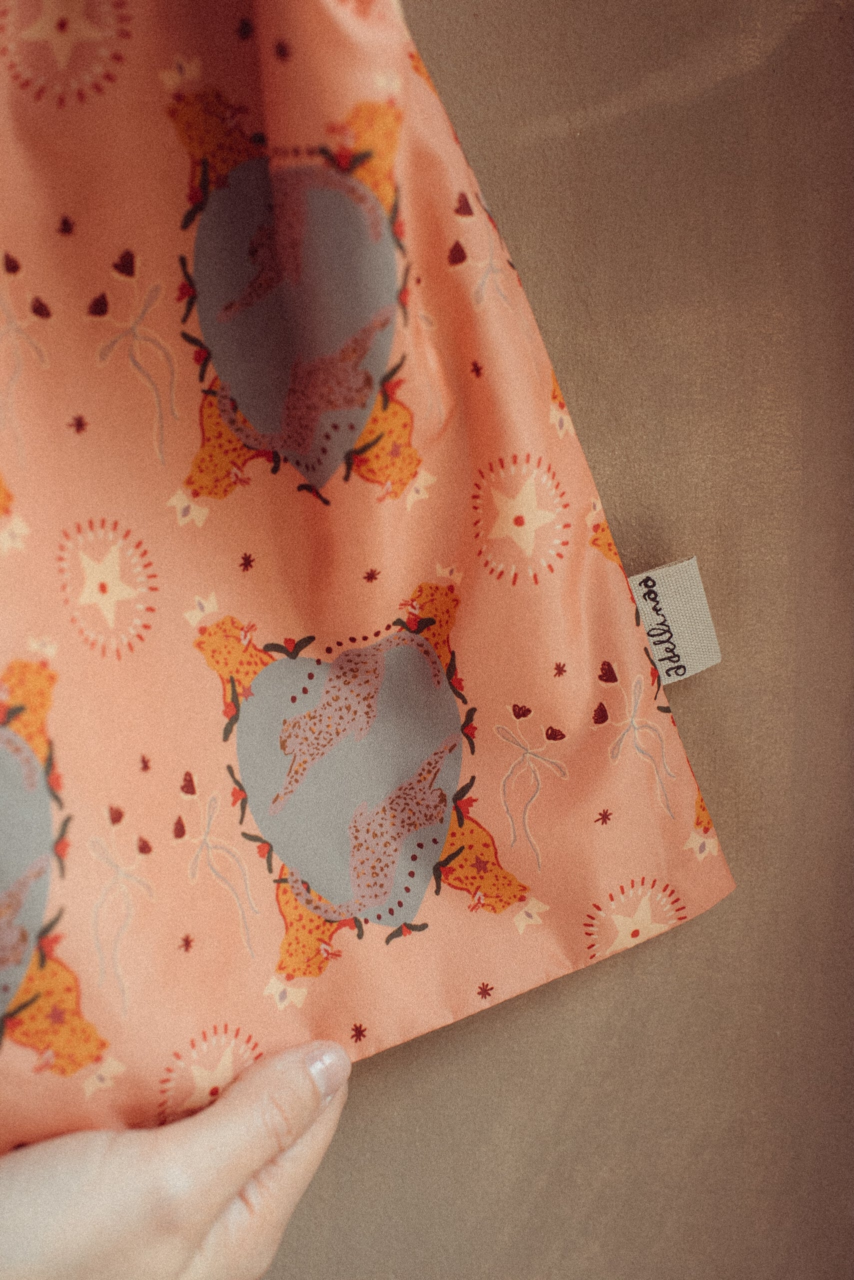Le illustrazioni che li decorano, realizzate in esclusiva per adellinaa da Nicoletta Carlotto, pittrice ed illustratrice, raffigurano eleganti leopardi, simbolo di una bellezza selvaggia e sofisticata. Sono disponibili in due varianti cromatiche: una nei toni del rosa, azzurro e arancio; l’altra in sfumature più terrose di beige, marrone e arancio. In entrambe le versioni, l’interno arancio accende il design con una nota calda e vibrante.